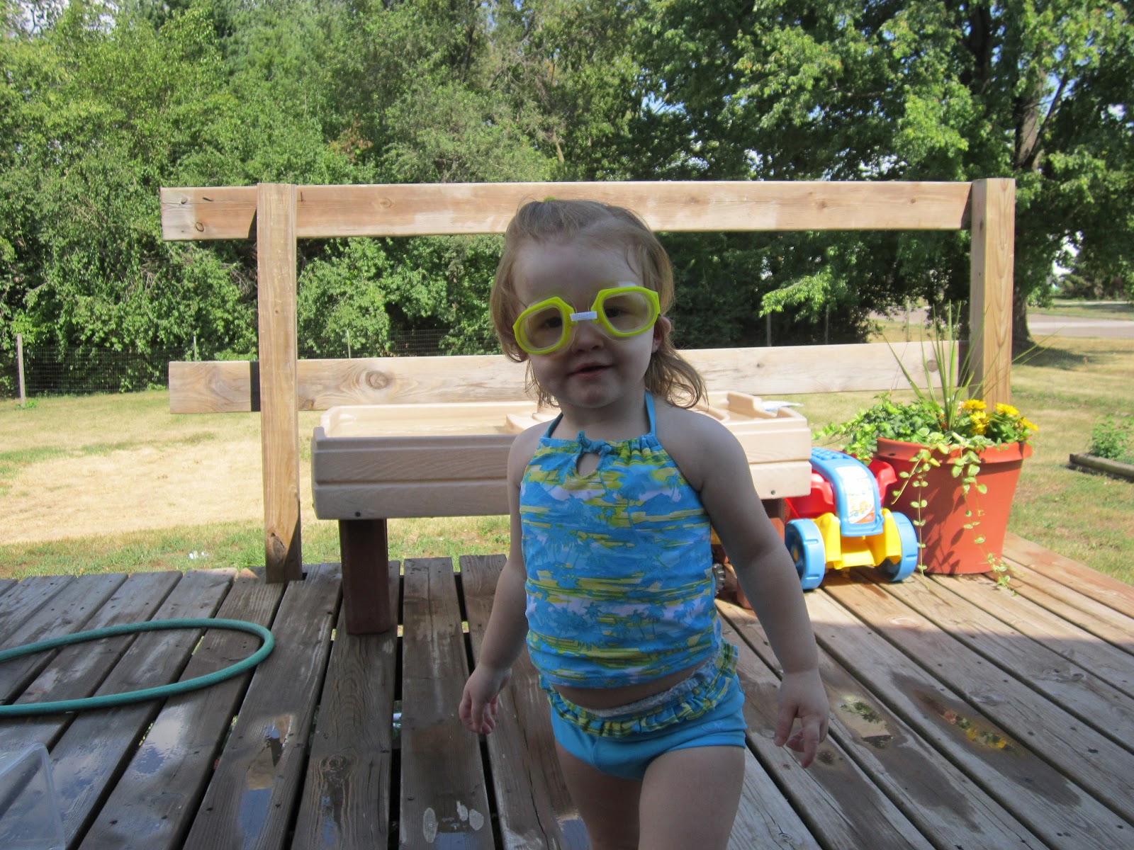 Today the kids played with the hose and pool and water table. They had a ton of fun and were really well behaved while doing it. I can't believe that August is quickly approaching and the busiest time of year for our family. I don't want to do it. Nope. I don't feel ready and we have so many decisions to make in such a short amount of time, AGH! I don't want to think about it.