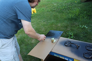 Jeremy came up with this clever little idea for the screws and door knobs. Umm, yes, we did a few door knobs too. Now, they feel different but, look way better....even if they do kinda disappear into our black doors now, lol!